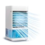 - ❄[Aire Acondicionado Portatil Silencioso] para sentir el viento fresco, simplemente coloque agua o cubitos de hielo en el tanque de agua del enfriador de aire, conecte el cargador y presione el...