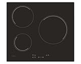 Nilson Placa Vitrocerámica Cristal Negro NV3600. Potencia máx. 5700 W, 3 Zonas de Cocción, 9 Niveles de Cocción, Control Táctil, Bloqueo y Autodesconexión de Seguridad, Diámetros 16-20-30 cm