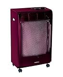 - Asas para transporte y ruedas pivotantes que permiten desplazarlo cómodamente por la estancia. Dimensiones de la estufa (ancho x alto x largo): 42 x 74 x 35 cm.