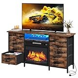 YITAHOME Mueble de TV con Chimenea Electrica, Chimeneas Electricas Decorativas, Mueble TV con 6 Cajones, LED para Televisiones 45-55", Estantería Multiusos con Cajoneras para Salón (Marrón)