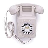 GPO 746 Teléfono fijo retro de pared con pulsación de botones - Cable en espiral, timbre auténtico - Marfil