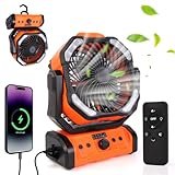 - 【Función poderosa】: el ventilador de camping iluminado está hecho de plástico ABS de alta calidad, ligero (500 g) pero duradero. El ventilador de camping iluminado viene con gancho y mando a...